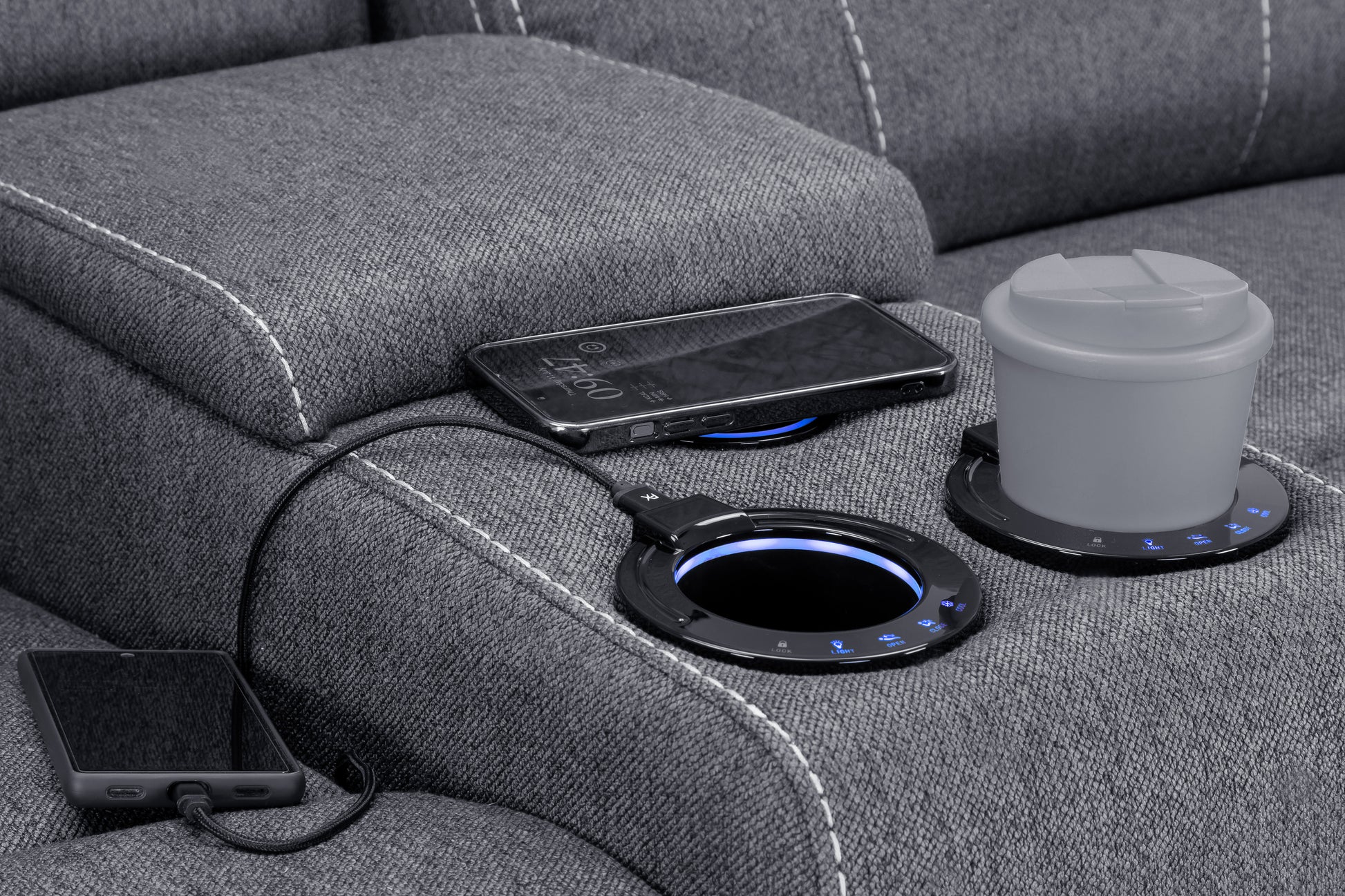 Galaxy Tech Recliner Sofa Grey Fabric 2 Seater