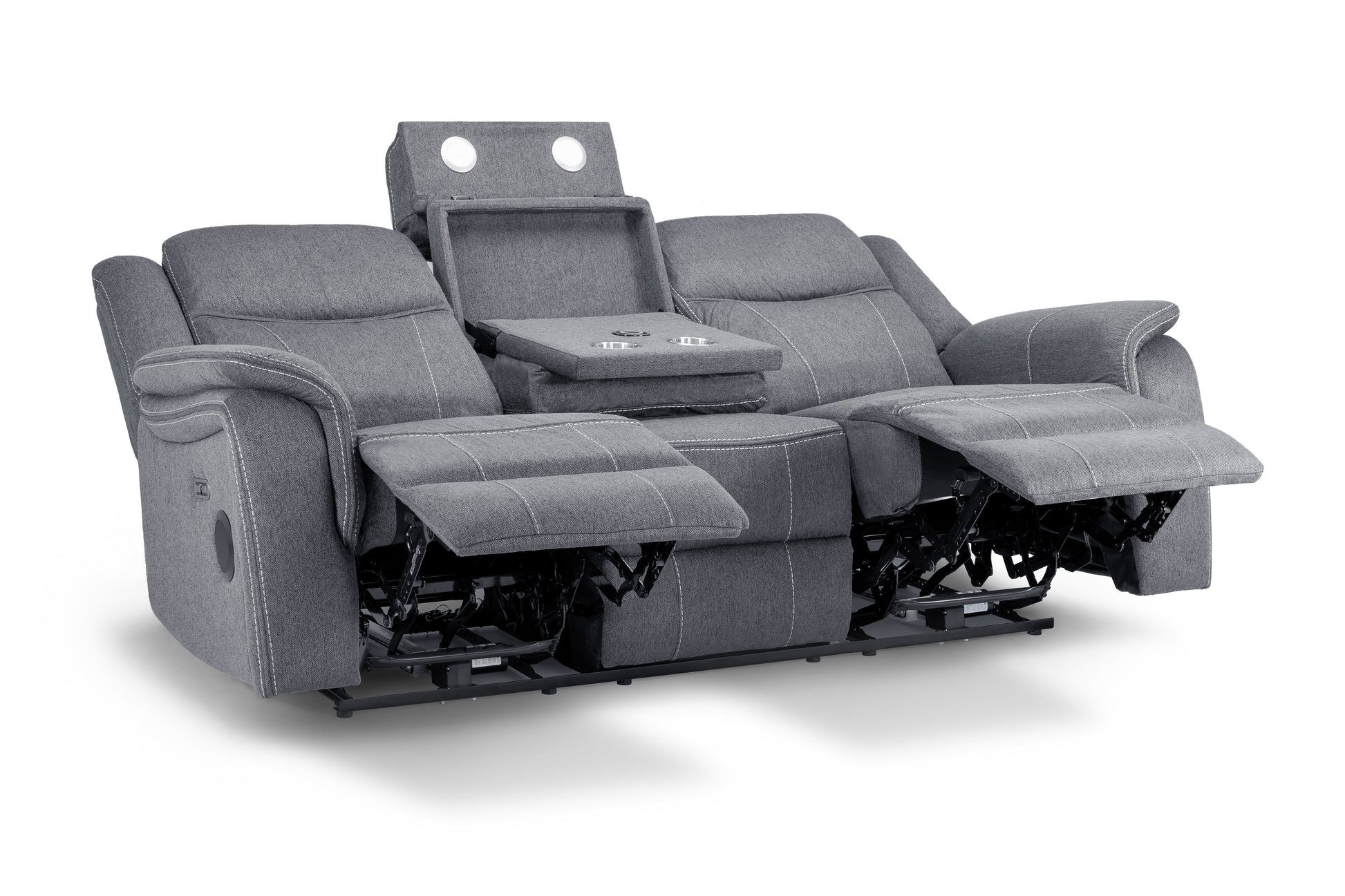 Galaxy Tech Recliner Sofa Grey Fabric 3 Seater